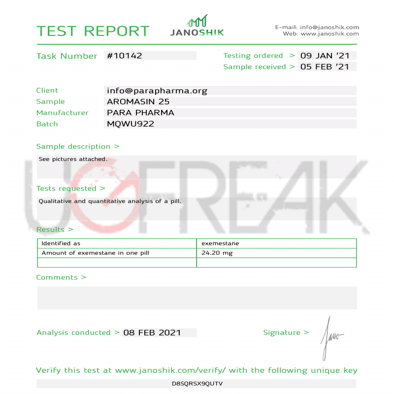 AROMASIN 25Β byΒ Para Pharma INTL (25mg/tab)Β contains Exemestane for effective estrogen control and hormonal balance. Features third-party testing and international pharma-grade quality.Β Consult a doctor before use.